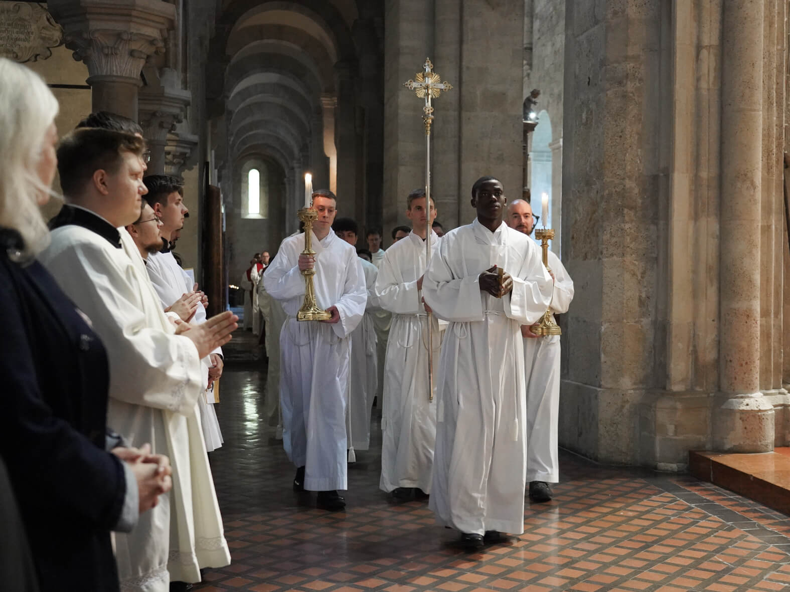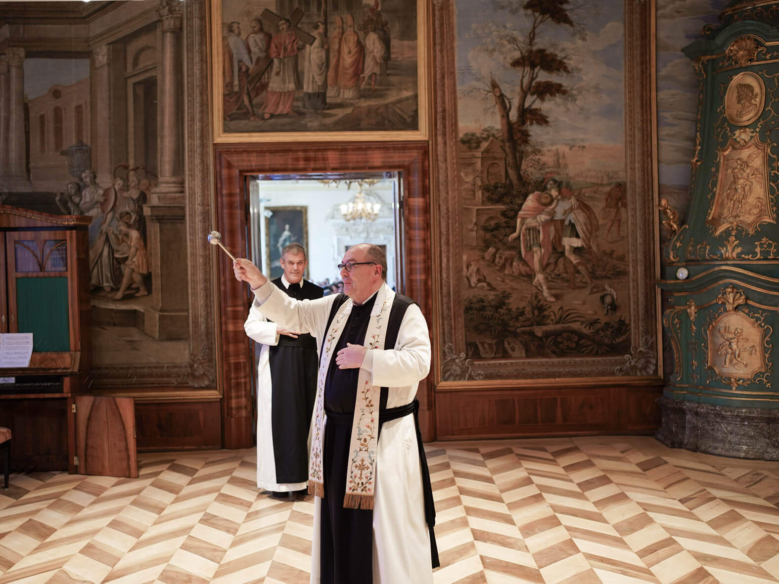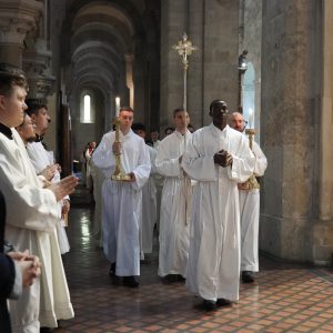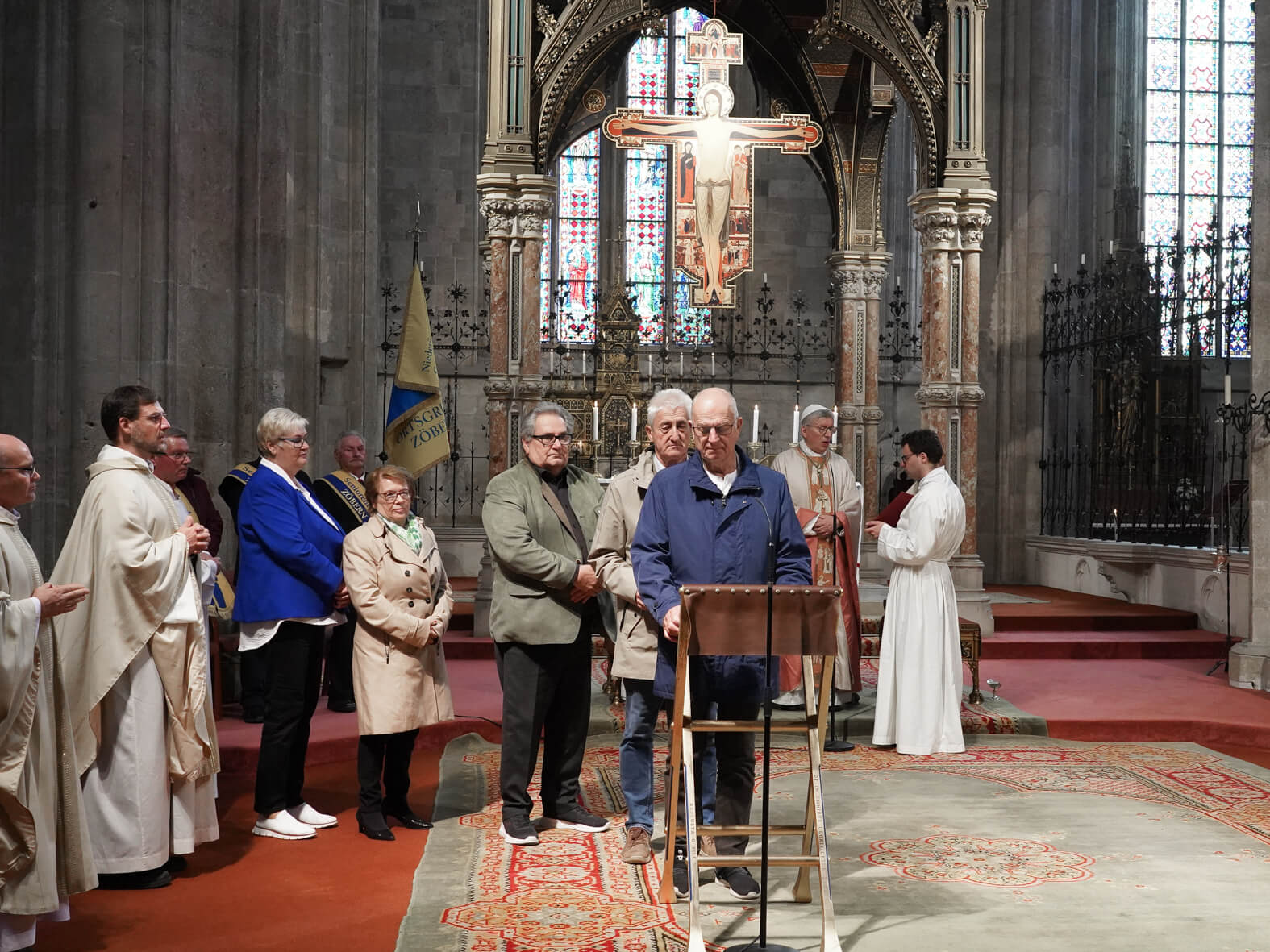 Unsere Kirche ist ein Haus Gottes. Während liturgischer Feiern (Beerdigungen, Hochzeiten, …) sind Sakristei und Kirche nicht zu besichtigen. Informationen erhalten Sie an der Pforte oder hier.
