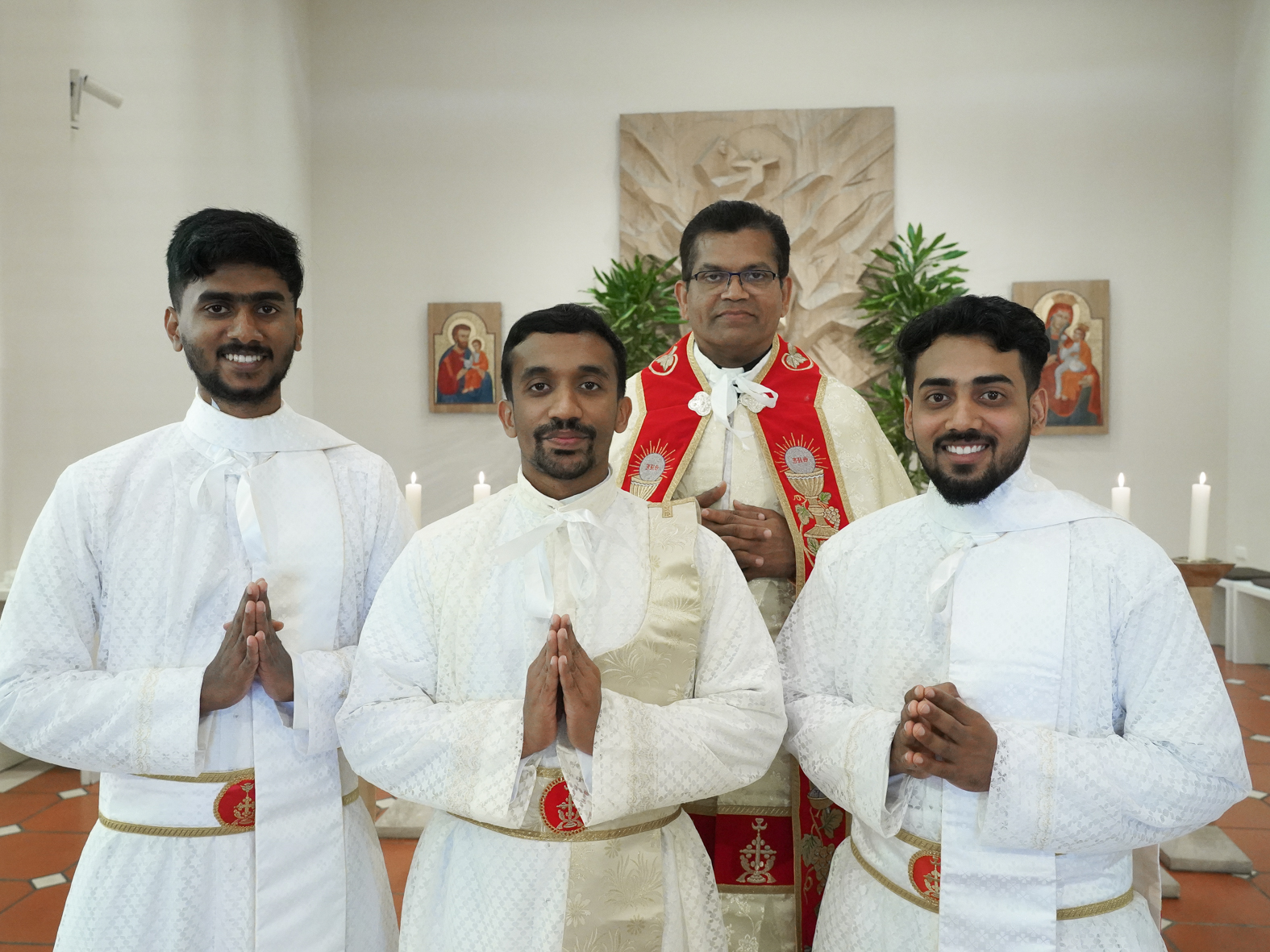 Am Donnerstag, 9. Oktober 2025, um 9.30 Uhr empfing in der Katharinenkapelle des Priesterseminars Bruder Tansen Joseph VC die Weihe zum Diakon sowie Bruder Thobiyas Xavier VC und Bruder Amal Jose VC die Weihe zum Subdiakon. Alle drei sind Seminaristen des Priesterseminars Leopoldinum. Die im syro-malabarischen Ritus durchgeführte Weihe wurde von Bischof Jose Pulickal aus Kanjirappally (Indien) gespendet. Die Weihe wurde LIVE aus der Katharinenkapelle des Priesterseminars Leopoldinum übertragen. Hier auch schöne Fotos zum Nachsehen.