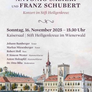 Herzliche Einladung zum Konzert: Antonio Salieri und Franz Schubert - Eine musikalische Wallfahrt! Am Sonntag, 16. November 2025 um 15:30 Uhr erklingen im Kaisersaal von Stift Heiligenkreuz musikalische Raritäten von Antonio Salieri und Franz Schubert mit zum Teil bisher...
