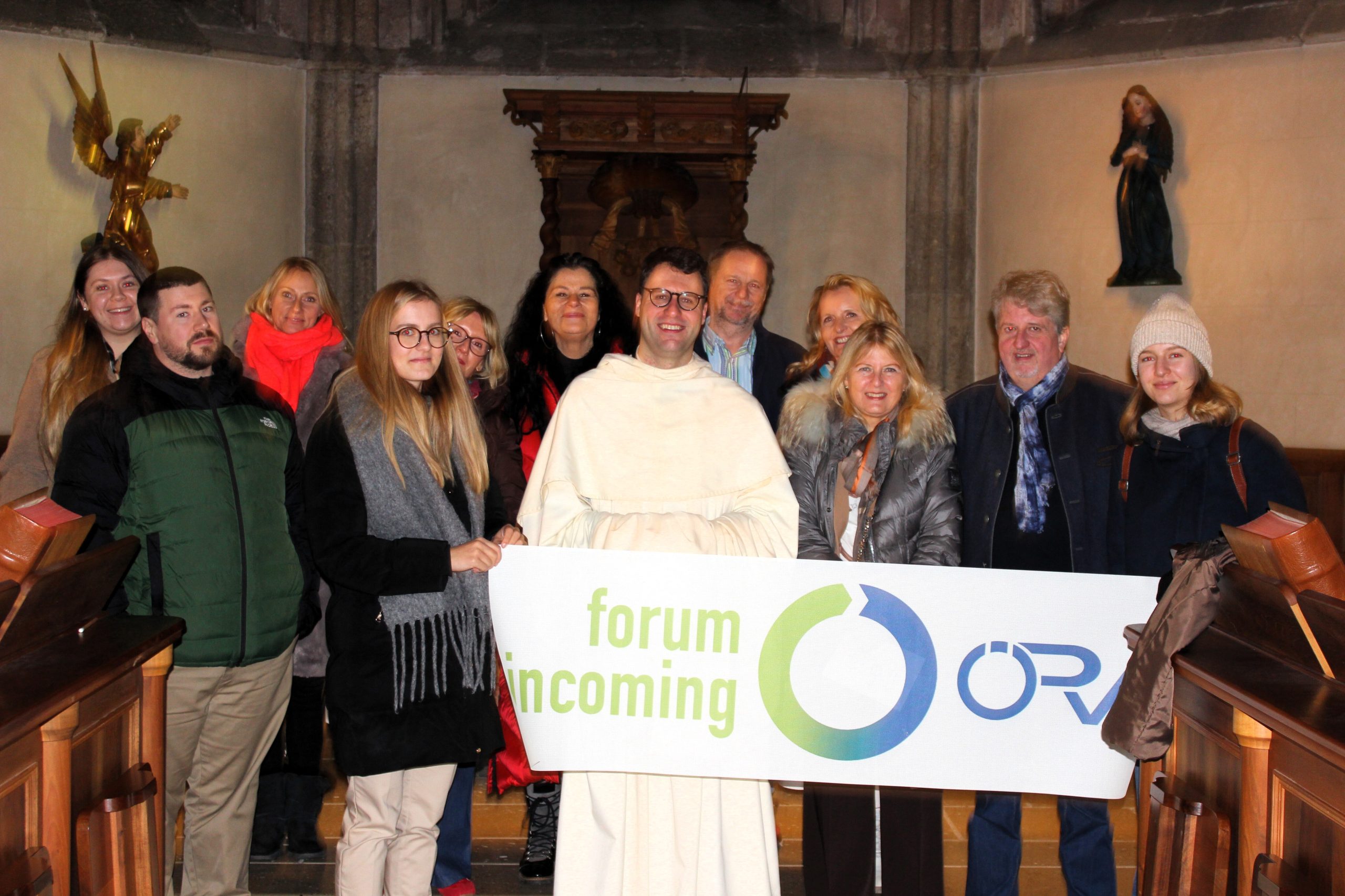 Vergangene Woche Donnerstag durften wir eine Delegation des Forum Incoming des Österreichischen Reiseverbandes im Stift begrüßen. Forum Incoming ist der Zusammenschluss führender österreichischer Incoming-Reiseveranstalter und damit eine wichtige Schnittstelle zwischen internationalen Reisebüros und österreichischen Tourismusangeboten. Pater Anastasius führte die Gruppe durch die Stiftsanlage und gab dabei Einblicke in die Geschichte und Spiritualität des Stiftes und des Zisterzienserordens. Den spirituellen Höhepunkt bildete die gemeinsame Teilnahme an der Vesper der Mönche. Im Anschluss gab es im eleganten Hochzeitsstüberl des Klostergasthofes einen gemütlichen Imbiss. Wir danken für den wertvollen Austausch und hoffen auf eine weitere gute Zusammenarbeit. (Gruppenfoto in der Bernardikapelle)