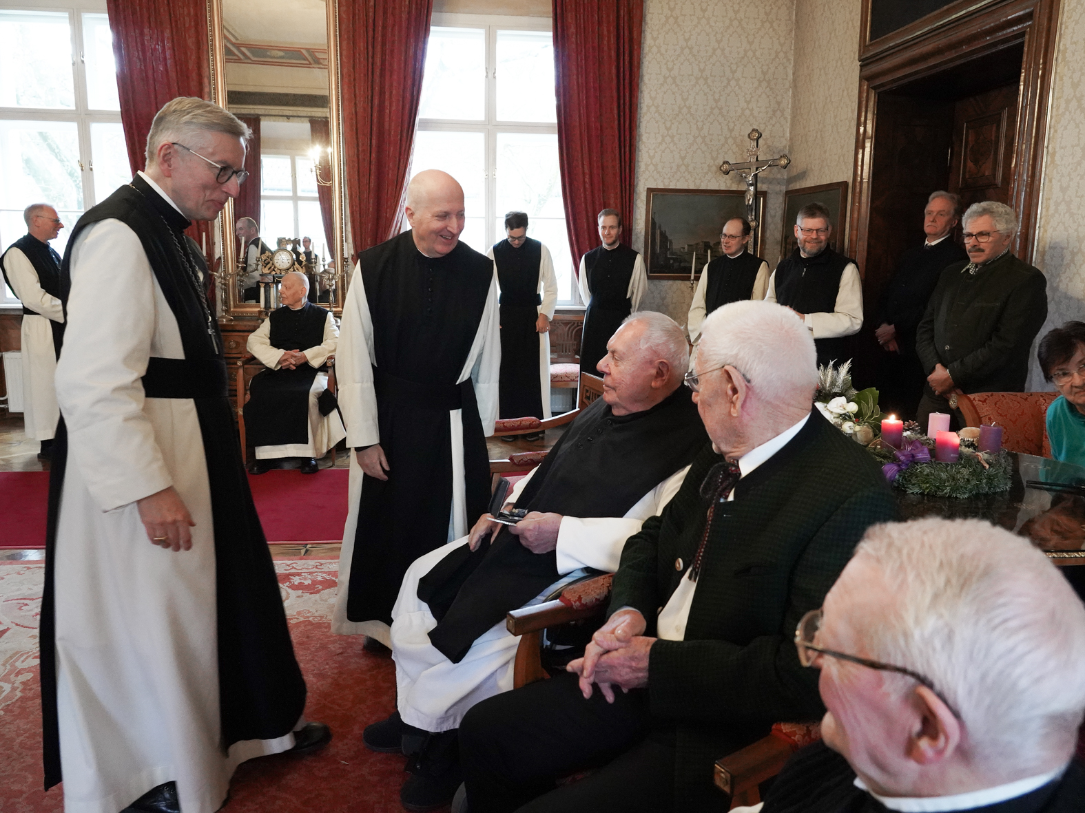 Am 8. Dezember feierte unser Pater Augustinus seinen 90. Geburtstag. Aus diesem schönen Anlass kamen zahlreiche Mitbrüder sowie eine Vertretung der Pfarre Sittendorf in die Prälatur, um ihm persönlich zu gratulieren.
