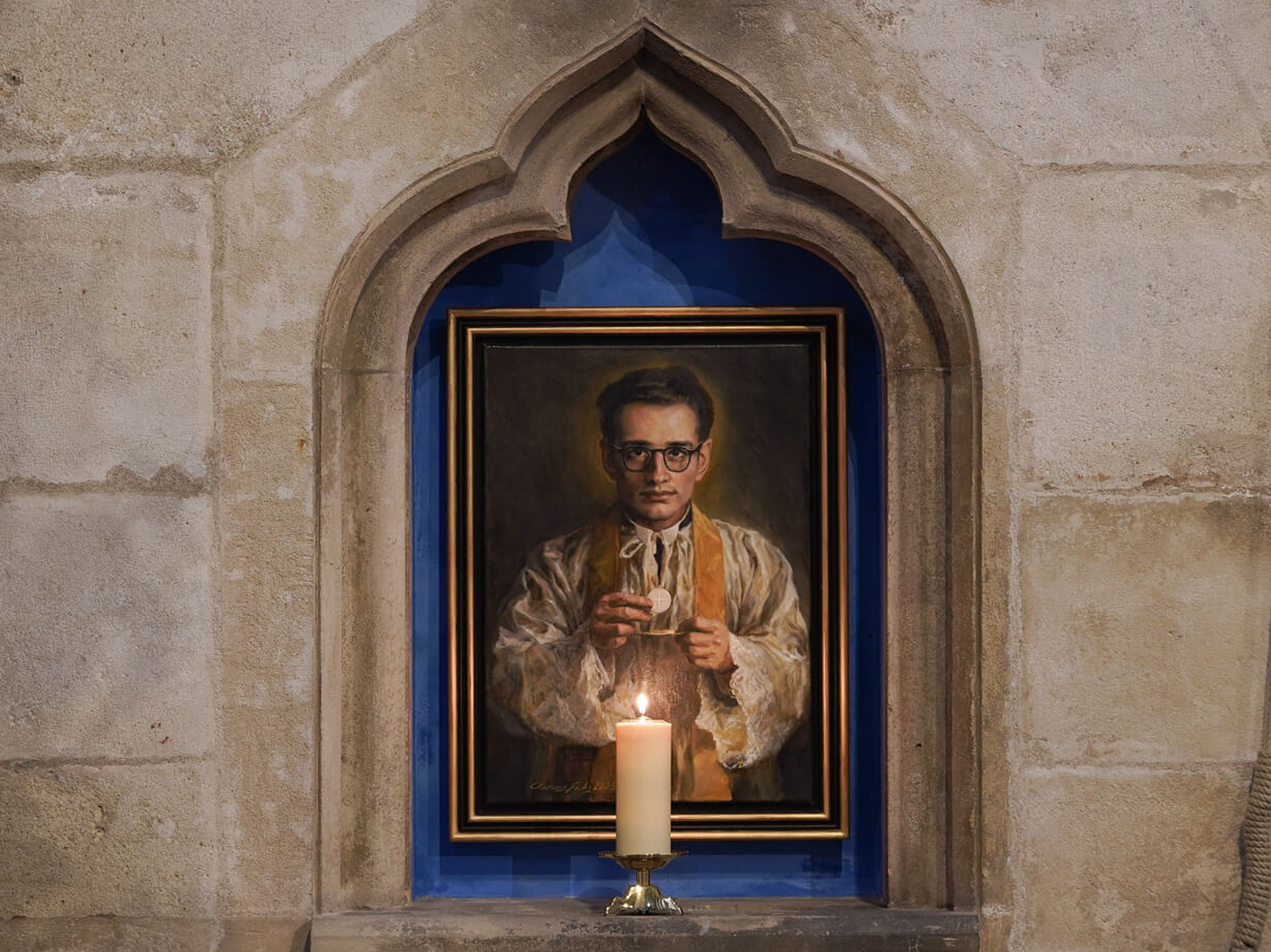 Foto: Gemälde des Seligen Pater Anasztáz János Brenner in der Stiftskirche, gemalt von Clemens Maria Fuchs.