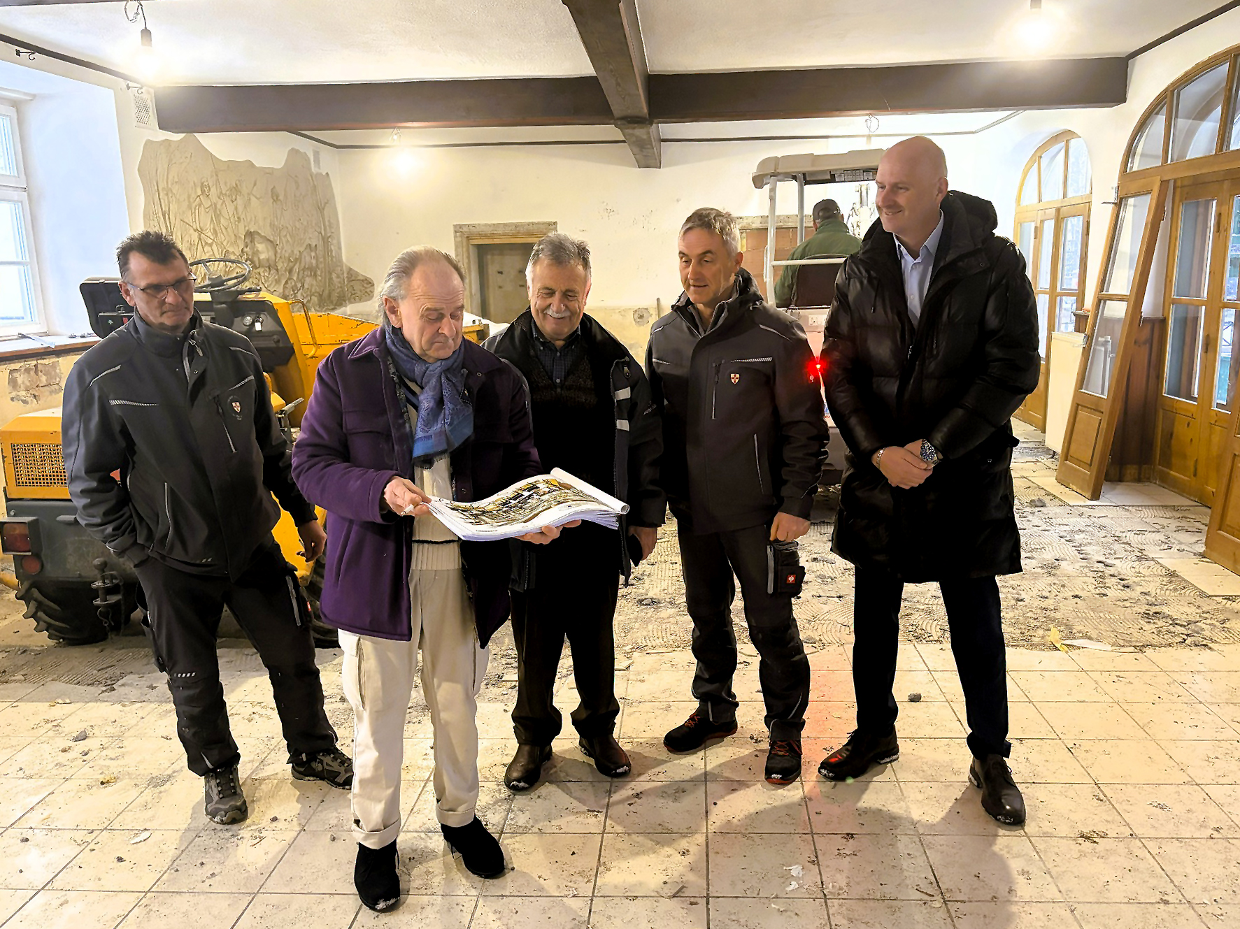Foto: Baubesprechung mit Bauamtlseiter Arnold Link, Herbert Fischbacher, Josef Glanz, Anton Balber und Klostergasthof Geschäftsführer Jaroslav Dombovari